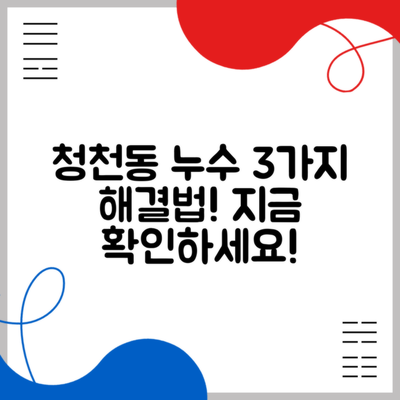누수 문제는 자칫하면 심각한 피해를 유발할 수 있는 상황입니다. 특히 청천동에서는 기후 변화로 인해 누수 사건이 빈번하게 발생하고 있어, 이에 대한 정확한 대처가 필요합니다.