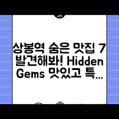 상봉역은 서울 중랑구에 위치한 숨은 보석 같은 곳이에요. 이곳에서 어떤 명소들이 사람들의 발길을 사로잡고 있는지 궁금하지 않으신가요? 제가 직접 방문해본 다양한 맛집과 즐길거리를 바탕으로 상봉역 주변의 매력을 소개해드릴게요.